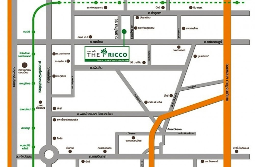 การเดินทาง เริ่มจาก ถ.สุขาภิบาล 5 ⇒ ถ.สายไหม เลี้ยวเข้า ซ.สายไหม 35 ขับตรงไปประมาณ 550 ม.ถึงโครงการ The Ricco Town พหลโยธิน-สายไหม *ใกล้ ร.ร.ผ่องสุวรรณวิทยา สายไหม