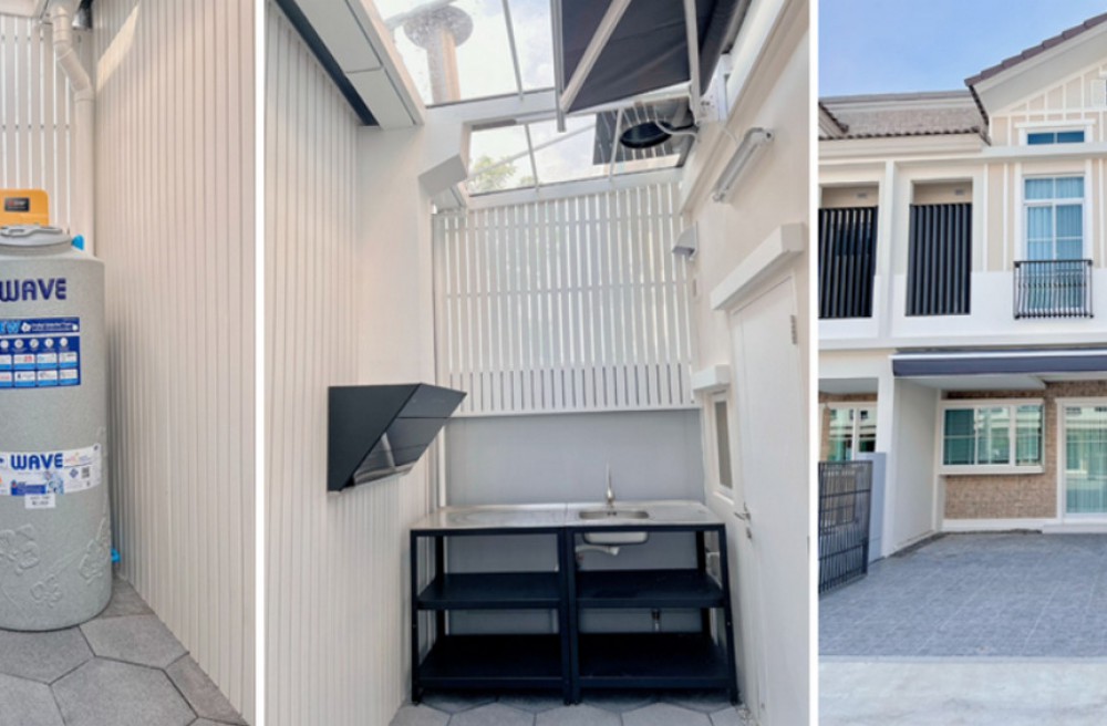 มีทั้งครัวในบ้านและนอกบ้าน และหลังคากันแดดหลังบ้านเปิดปิดได้ พร้อมระบบระบายอากาศ