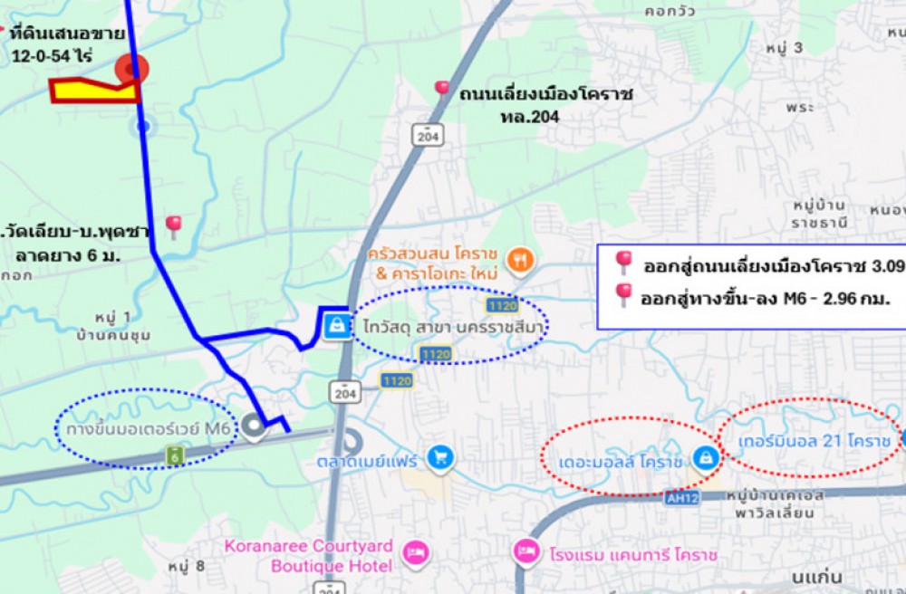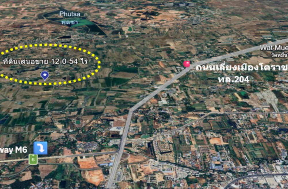 เมืองนครราชสีมา , จังหวัดนครราชสีมาขาย ที่ดิน ทำเลทอง ติด ถนน อบจ.นม.01312 บ.วัดเลียบ-บ.พุดซา เขตอำเภอเมือง 12 ไร่ 54 ตรว ถนนสายหลักในชุมชน ฟรีค่าโอน
