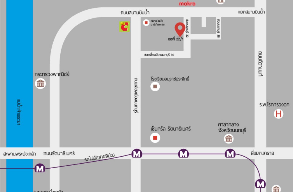 ซอยนนทบุรี 32 ถนนสนามบินน้ำ อยู่ตรงข้าม makro