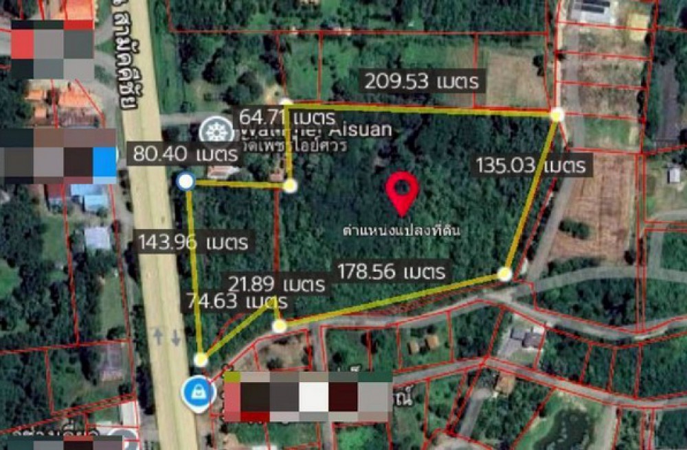 เนื้อที่รวม 22-2-88.3 ไร่ (หน้ากว้างติดถนนใหญ่) กว้างลึกประมาณ 140 x 280 เมตร