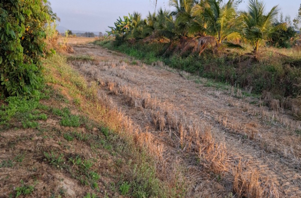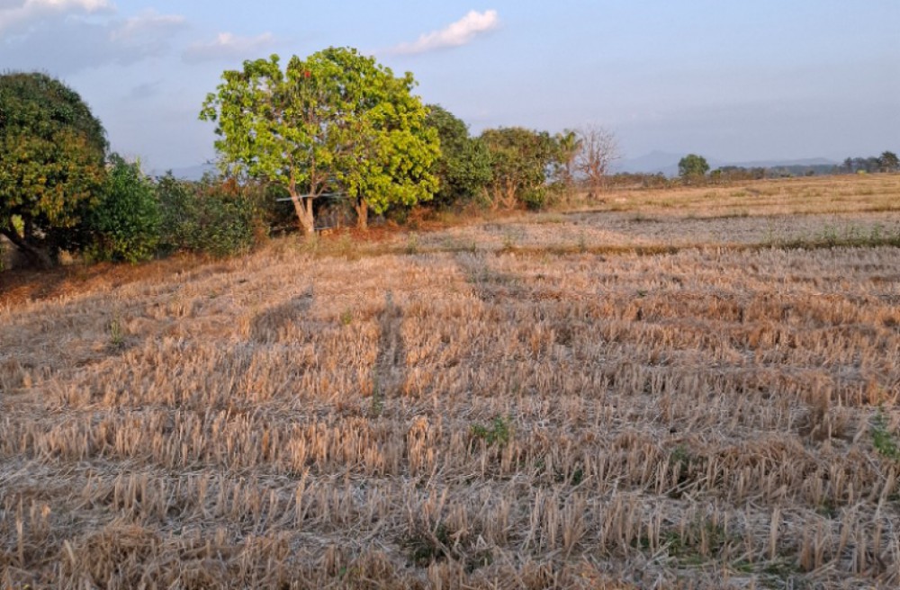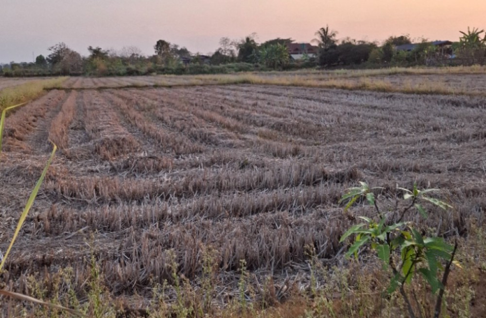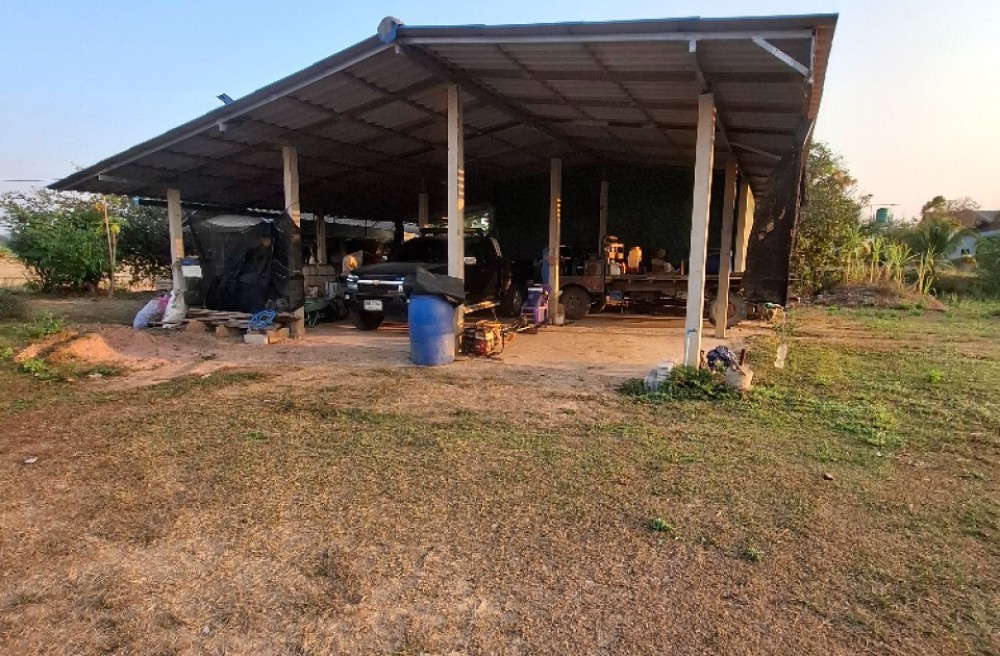บ้านชั้นเดียว 2 ห้องนอน 2 ห้องน้ำ โรงรถ 1 หลัง ไฟฟ้า น้ำประปาพร้อมใช้งาน ที่นา 7 ไร่ 2 งาน 45.9 ตารางวา
