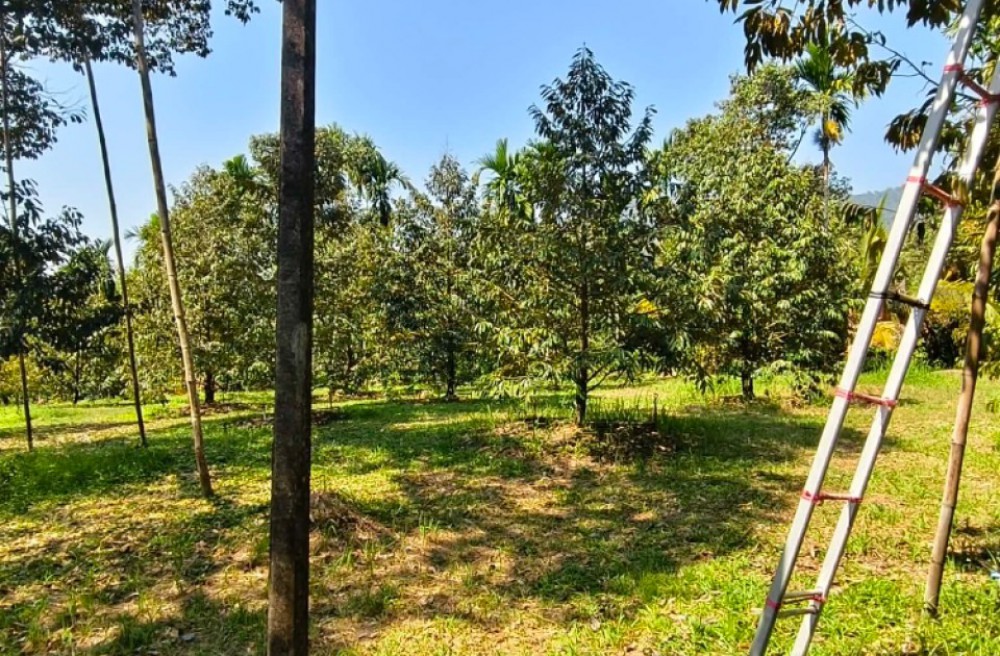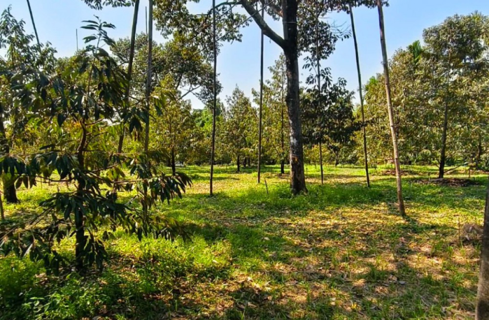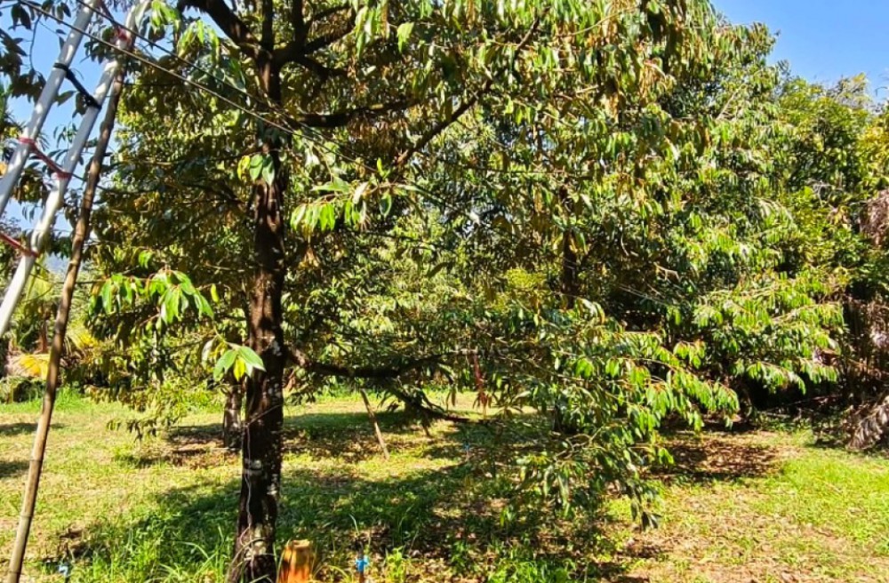ต้นทุเรียนอายุ 3 ปีครึ่ง จำนวน 120 ต้น ต้นทุเรียนขนาดกลาง พร้อมให้ผลในอนาคต 30 ต้น มี ระบบท่อน้ำในสวนเรียบร้อย ลดต้นทุนการพัฒนา