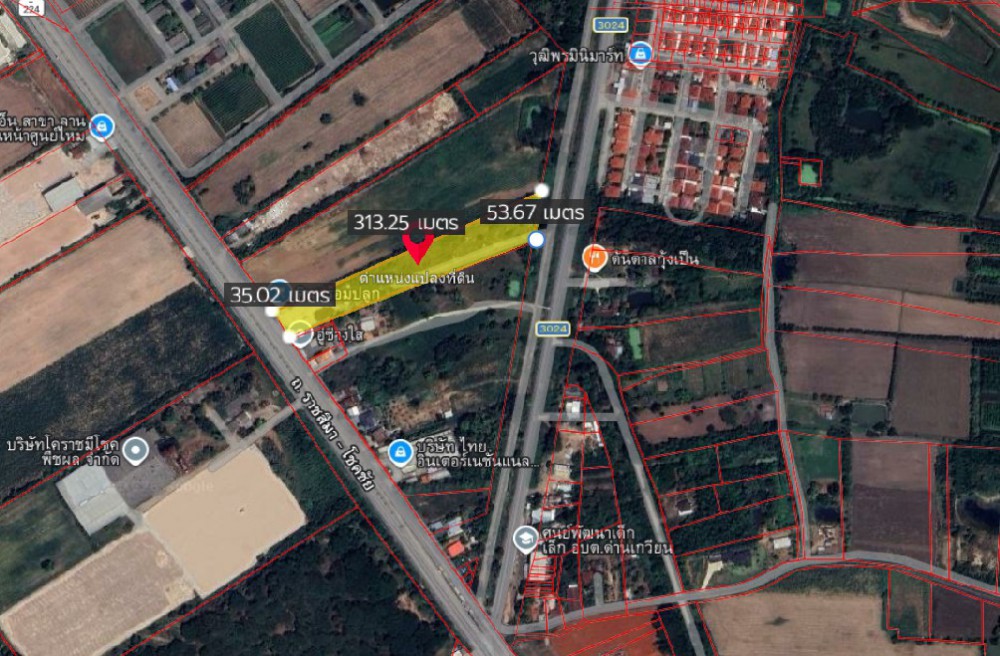 -หน้ากว้างที่ดินติดถนนทางหลวง 3024 โชคชัย-เดชอุดม