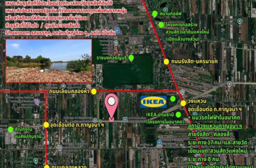 คลองหลวง , จังหวัดปทุมธานีราคานี้หวานเจี๊ยบ ขายที่ดินติดเลียบกาญจนาภิเษก คลอง 5 (ถนนรอง) ใกล้อิเกียปทุมและถนนคลองหลวง เหมาะซื้อลงทุน!