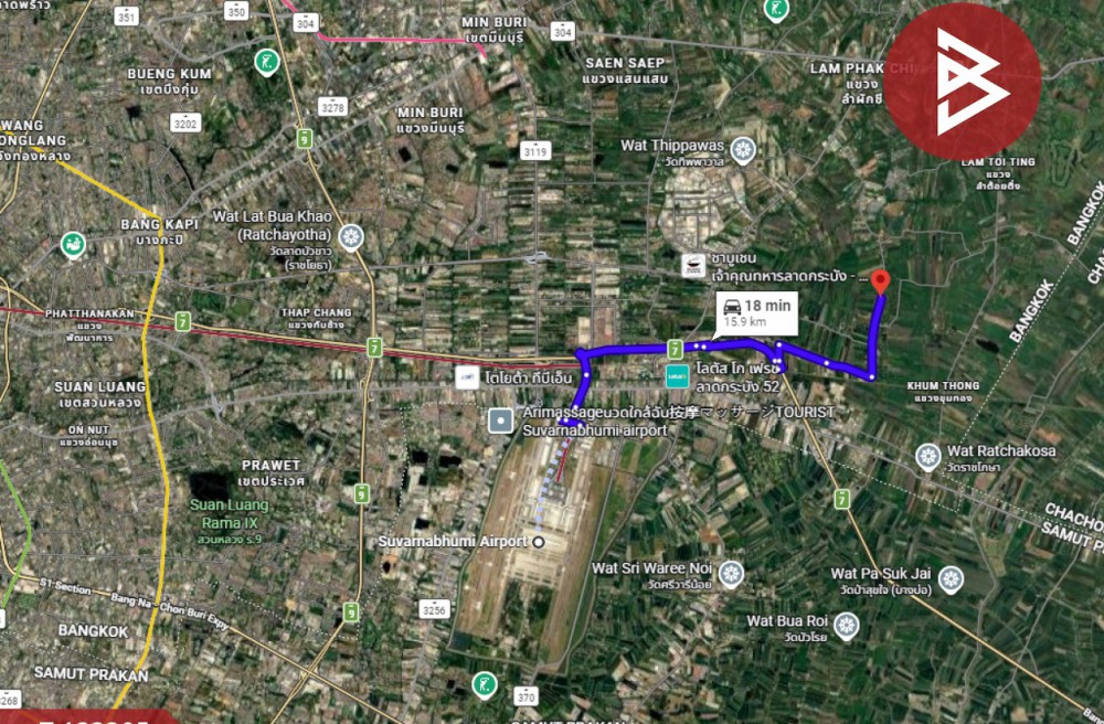 ห่างสนามบินสุวรรณภูมิ 15 กม. บริเวณรอบๆข้างมีโรงงานอุตสาหกรรมขนาดใหญ่