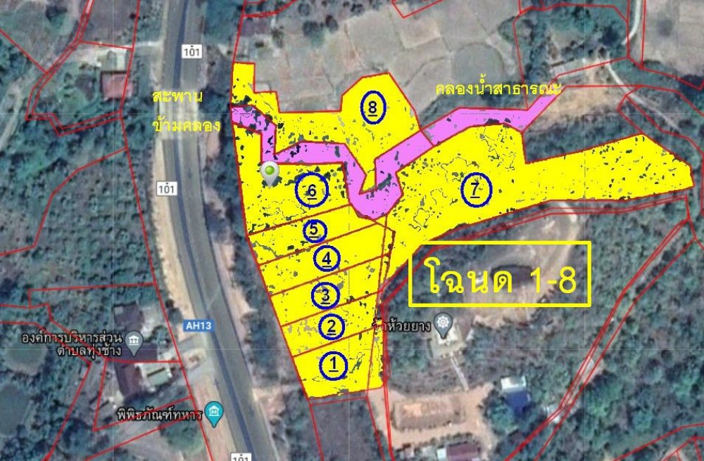 - ที่ดิน อยู่ฝั่ง ตรงข้าม อบต.ทุ่งช้าง