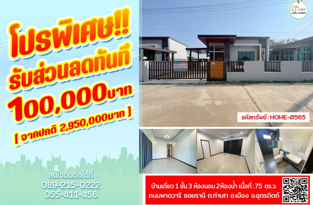 เมืองอุตรดิตถ์ , จังหวัดอุตรดิตถ์บ้านในโครงการบ้านเดอะเลค วิว บ้านเดี่ยว 1ชั้น 3 ห้องนอน 2 ห้องน้ำ 1 ห้องครัว พร้อมโรงรถ จอดได้ถึง 2 คัน บ้านมือสอง แต่สภาพมือ1 พร้อมเข้าอยู่ เนื้อที่เยอะ ตัวบ้านใช้สุขภัณฑ์คุณภาพดี พร้อมรั้วคอนกรีต 4 ด้าน ปลอดภัยแน่นอน สังคมดี สิ่งแวดล้อมดี ทำเลดี ฟั่งชั่นและพื้นที่ใช้สอยครบๆ สาธารณูปโภค ไฟฟ้า น้ำประปา อินเตอร์เน็ต ครบ อยู่ใกล้ โลตัสอุตรดิตถ์,การไฟฟ้าภูมิภาคอุตรดิตถ์,สหกรณ์การเกษตรเมืองอุตดริตถ์,ปั๊มน้ำมัน,ธนาคาร,ตลาดสด,ร้านค้า,ร้านอาหาร,คาเฟ่,โรงแรม,รีสอร์ท,อื่นๆ บ้านหลังนี้พร้อมเข้าอยู่ได้ทันที แถมฟรี!!! ค่าโอน+ภาษี ต่างๆ ,ปั๊มน้ำ+ถังเก็บน้ำ 1 ชุด , บิ๊วอินห้องครัว,เครื่องปรับอากาศ 1 เครื่อง,เครื่องทำน้ำอุ่น 2 เครื่อง,ฮูดดูดควัน+เตาเเก๊ส,ชุดผ้าม่านอย่างดี(ทั้งหลัง) คุ้มสุดๆแบบนี้ ห้ามพลาด