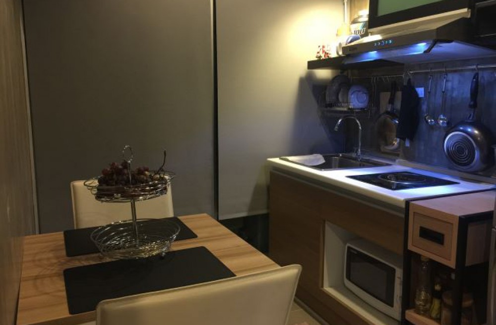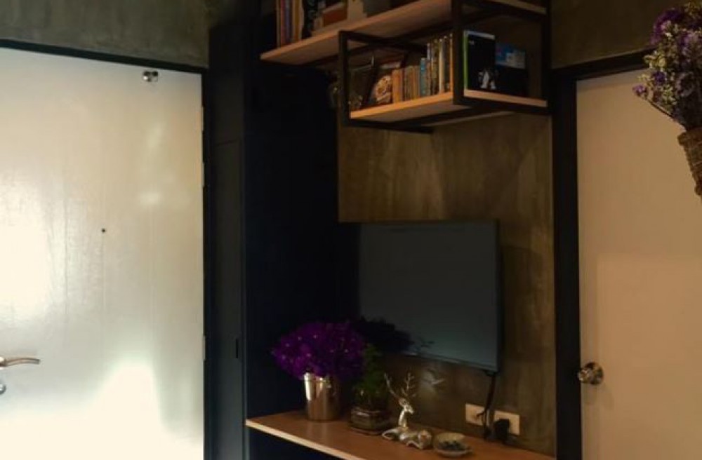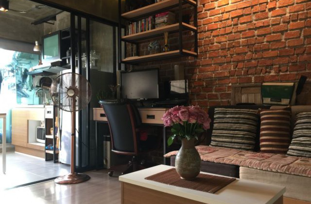 ขนาด 30.1 ตรม. 1 ห้องนอน 1 ห้องน้ำ ชั้น 5 ตึก B ที่่จอดรถสะดวกสบาย ตกแต่งสไตล์ลอฟต์ Loft ภายในมีเฟอร์นิเจอร์ครบ แอร์ 1 เครื่อง