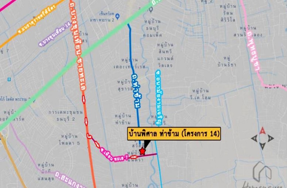 การเดินทาง เริ่มจาก ถนนบางขุนเทียน-ชายทะเล มุ่งหน้าทางใต้ หน้าปากทาง ซอยเทียนทะเล1 ⇒ เลี้ยวซ้ายเข้าสู่ ซอยเทียนทะเล7 ⇒บ้านพิศาล ท่าข้าม (โครงการ14) *โครงการอยู่ ซอยเทียนทะเล7.