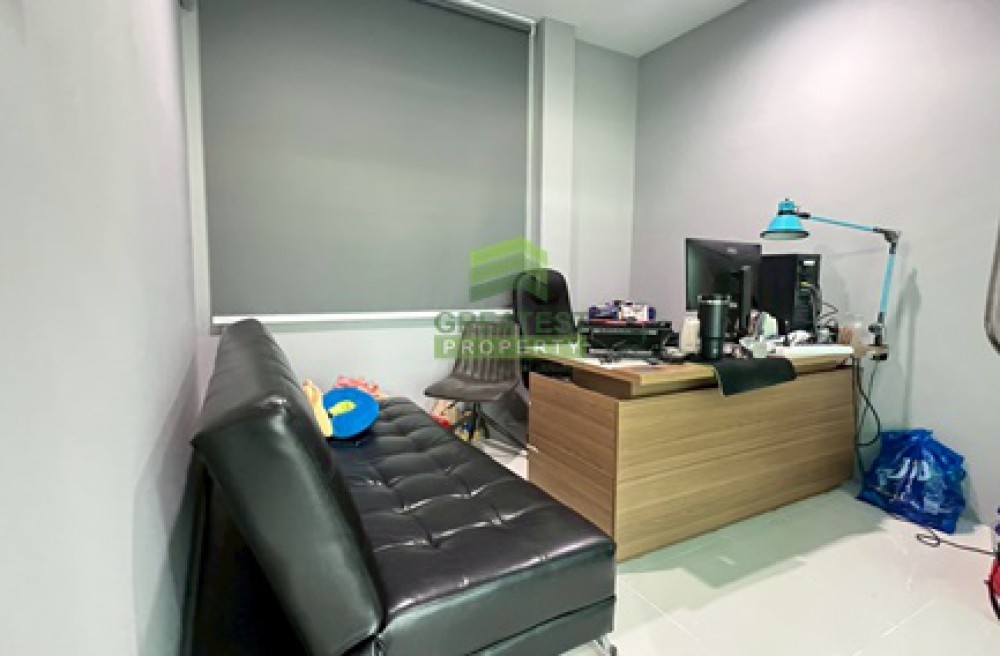 ตกแต่ง : ตึกสำนักงาน 2 ชั้น พื้นที่ใช้สอย 288 ตร.ม ตกแต่งด้วยฟังก์ชันเรียบหรู เหมาะแก่การทำงาน ด้วย 1 ห้องประชุมใหญ่ 4 ห้องทำงาน 1 ห้องโถงรับแขก 1 ห้องรับประทานอาหาร 1 ห้องครัว 5 ห้องน้ำ 2 ห้องเก็บของ และ 1 ห้องแม่บ้าน พื้นกระเบื้องแกรนิตโต้ทั้งหลัง กระจกเขียวตัดแสง ม่านปรับแสง ไม่ร้อน ตัวอาคารโปร่ง โล่ง อากาศถ่ายเทดี วางระบบ LAN/ไฟฟ้าภายในอาคาร ฟรีแอร์มากถึง 9 ตัว พร้อมระบบโซล่าเซลล์ขนาด 10 KW. ช่วยประหยัดไฟได้มากสุดๆ พร้อมบริการฉีดปลวกรายปี ประตูรั้วไฟฟ้า และประตูเล็ก มีมุมติดป้ายชื่อสำนักงานชัดเจน พร้อมสวนสวย มุมนั่งเล่น