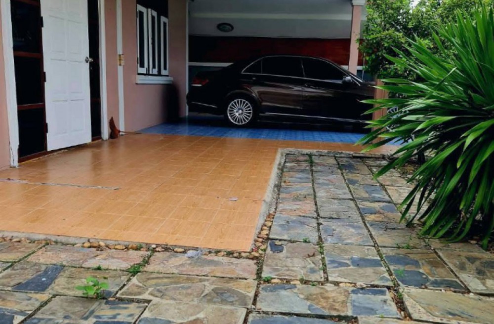 หน้าบ้านกว้าง มีพื้นที่จัดสวนด้านข้าง จอดรถในบ้านได้