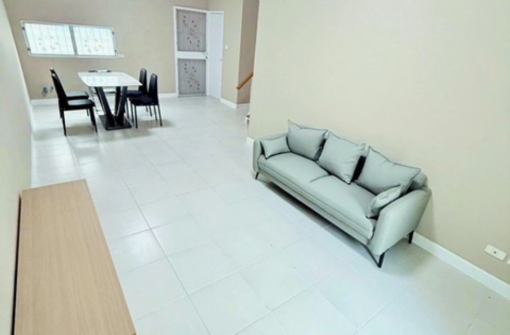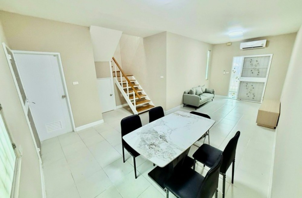 Townhouse for sale or rent 2 stories 3 bed 2 bath 900 m. from Kasetsart University and The Jas Wanghin Land area 25 sq.wa. usable area 200 sq.m. New home Rental 19,499 THB per month Sale price 3.55 million THB Located in Ladprao quiet private suitable for residence or home office with easy access to Kaset Nawamin and Ramintra roads