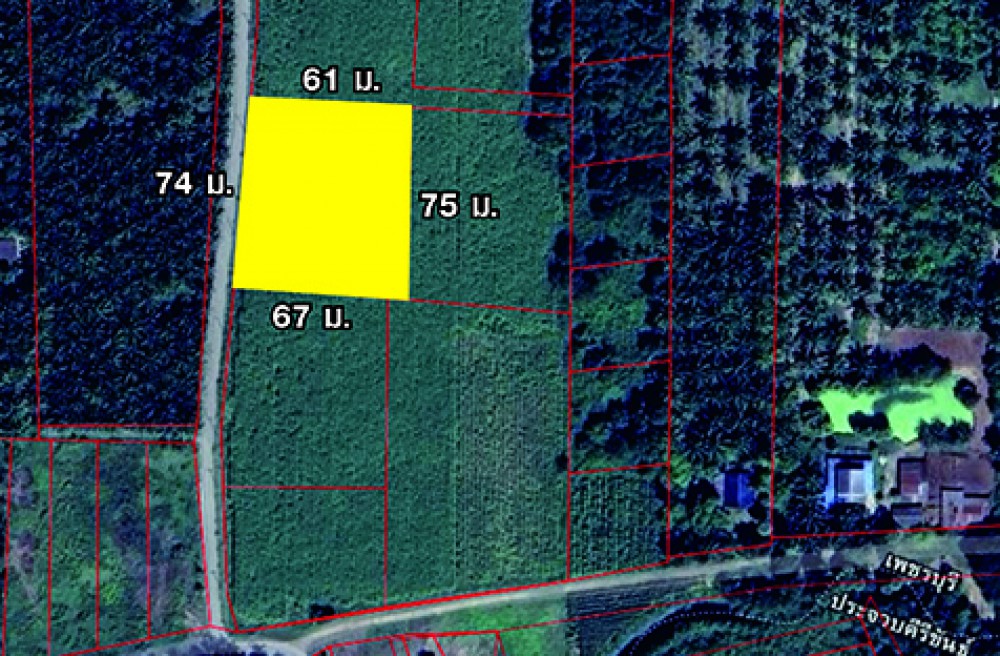 - หน้ากว้างติดถนน 74 ม. ลึก 67 ม.