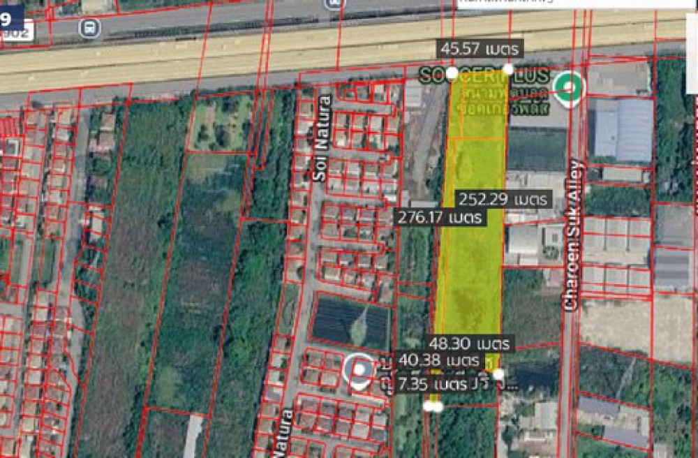 ขายด่วน ที่ดินแปลงใหญ่ศักยภาพสูง ราคาถูก ย่านทุ่งครุ ติดถนนเลียบกาญจนาภิเษก ย่านชุมชน แหล่งหมู่บ้านจัดสรร เหมาะแก่การลงทุน