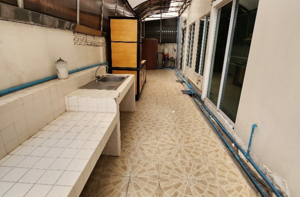 มีเคาน์เตอร์บาร์ ,ประตูสไลด์กระจกเปิดไปด้านหลังเป็นครัว ซิงค์ปูนล้างจาน 1 หลุม