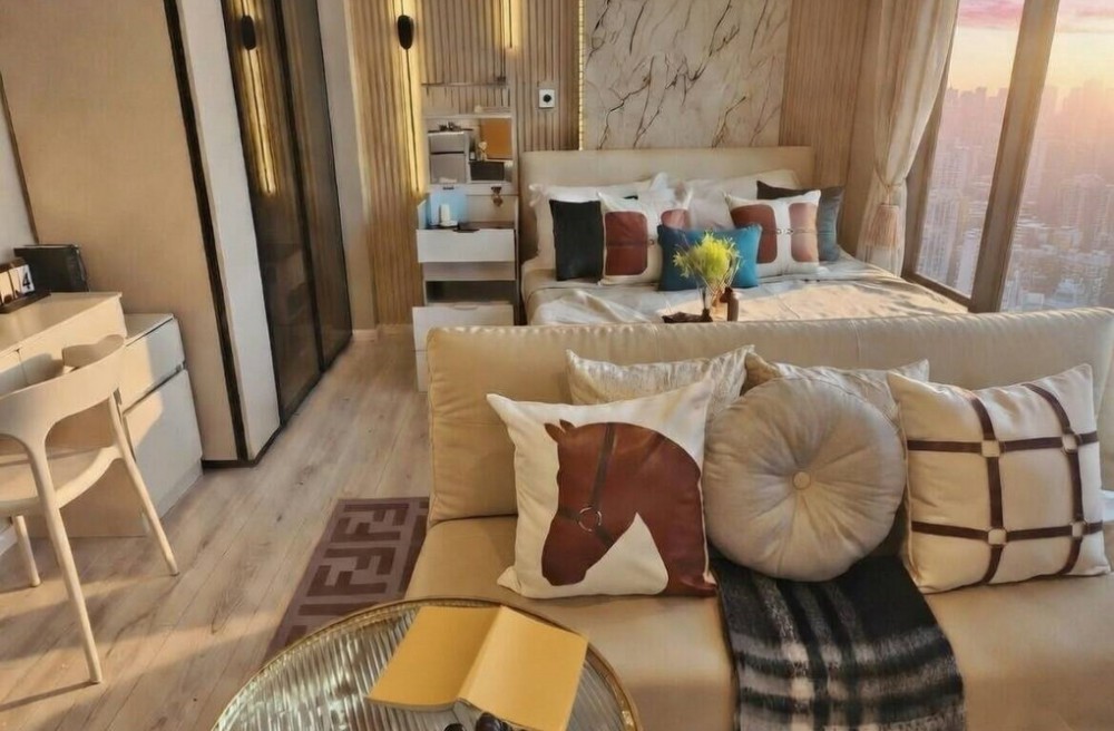 แบบ 1 ห้องนอน ขนาด 27 ตร.ม. ชั้นสูง แต่งใหม่สไตล์หรู เฟอร์นิเจอร์และเครื่องใช้ไฟฟ้าครบชุด พร้อมเข้าอยู่