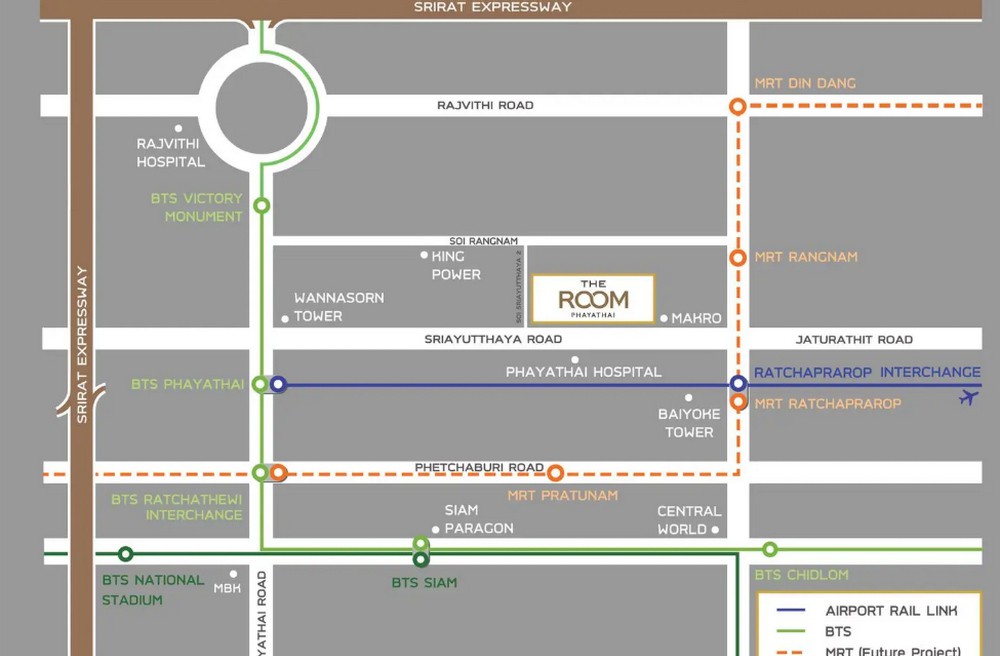 ห่างจาก BTS พญาไท 700 เมตร, Airport Link ราชปรารภ 250 เมตร, Makro ศรีอยุธยา 100 เมตร, และ รพ. พญาไท 1 300 เมตร