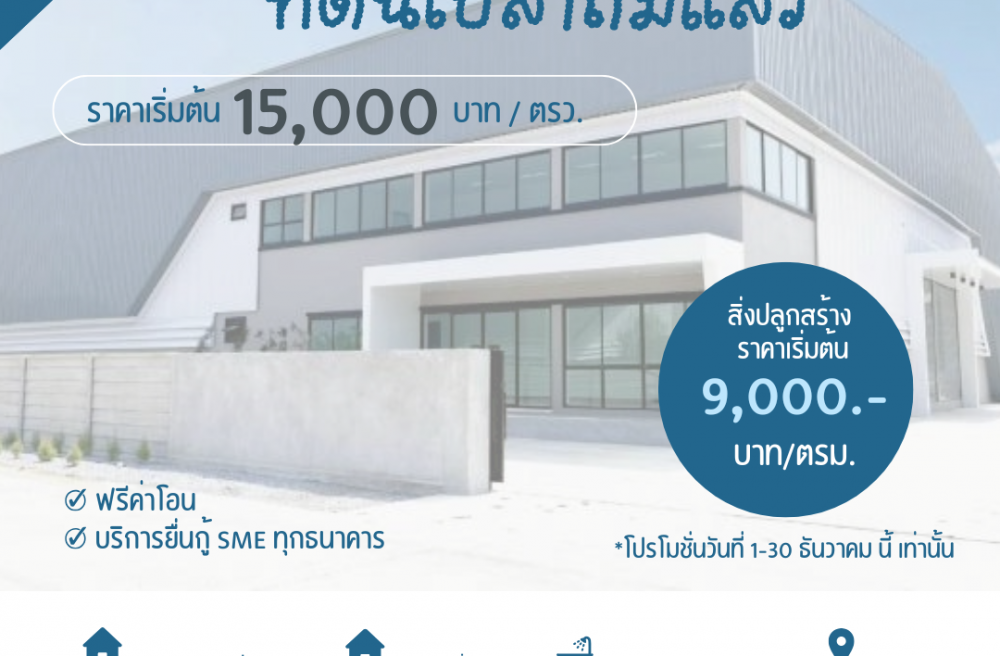 ขายที่ดินเปล่า พร้อมก่อสร้าง ( เหมาะสร้าง โกดัง,โรงงาน,คลังสินค้า , โฮมออฟฟิศ )ที่ดินขนาด100-200-300 ตรว. ถึง 1-5ไร่+ สิ่งปลูกสร้างตามขนาดที่ลูกต้องการใช้งาน