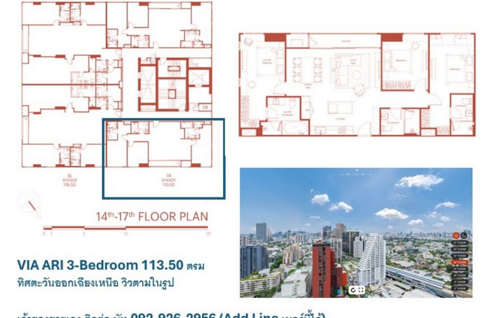 เขตพญาไท , จังหวัดกรุงเทพมหานคร(Owner Post) VIA ARI 3-Bedroom ขนาด 113.50 ตารางเมตร ทิศเหนือ Rare Item!