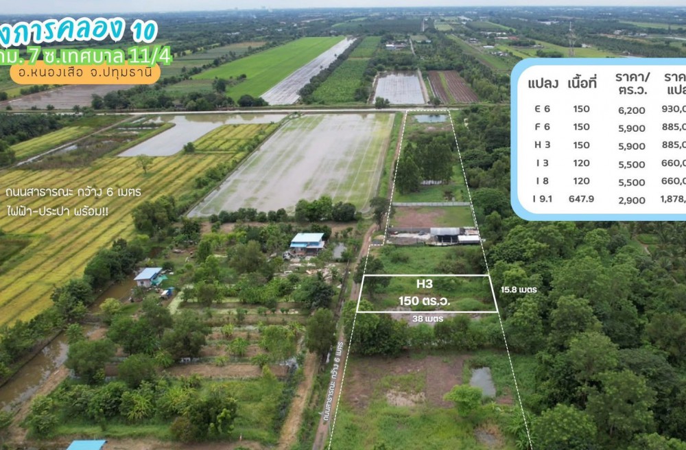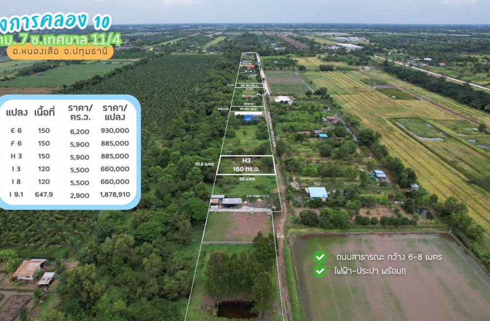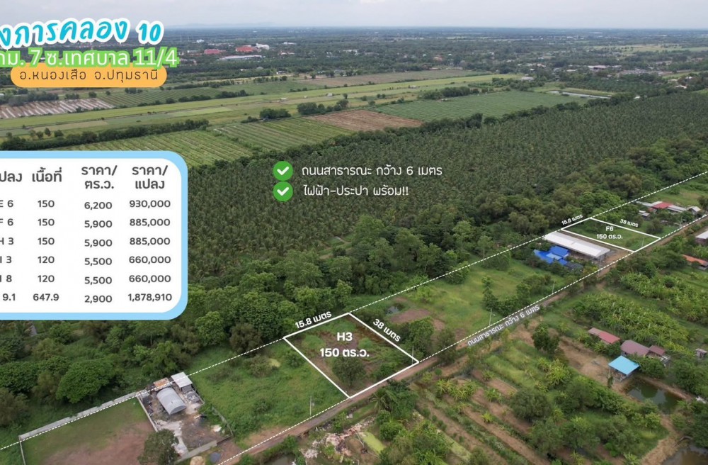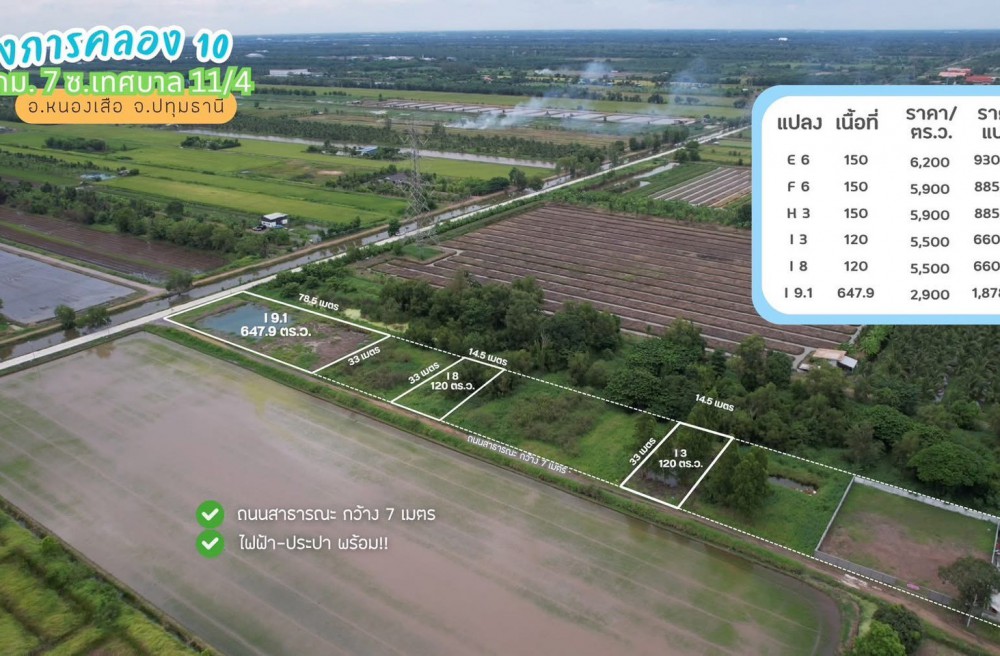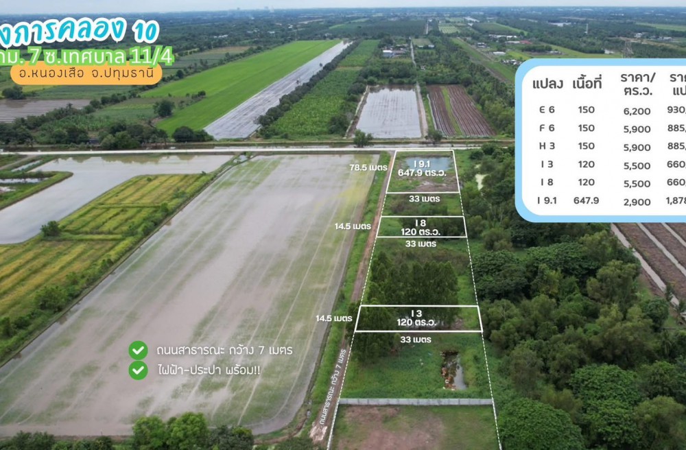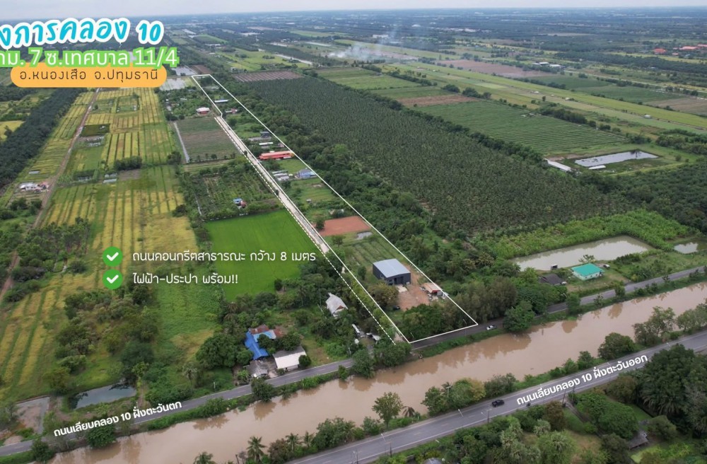 ธัญบุรี , จังหวัดปทุมธานีขายที่ดินคลอง 10 กม.7 เนื้อที่เริ่มต้นแปลงละ 120 ตารางวา อ.หนองเสือ จ.ปทุมธานี