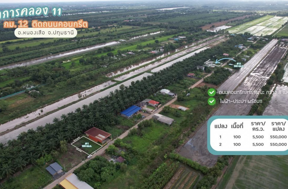 หนองเสือ , จังหวัดปทุมธานีขายที่ดินคลอง 11 ขนาดแปลงละ 100 ตารางวา อ.หนองเสือ จ.ปทุมธานี