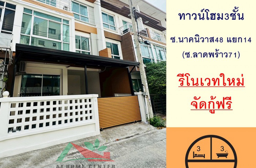เขตลาดพร้าว , จังหวัดกรุงเทพมหานครขายทาวน์โฮม3ชั้น 20.4ตรว. ซ.นาคนิวาส48 แยก14 (ลาดพร้าว71) รีโนเวทใหม่ พร้อมอยู่