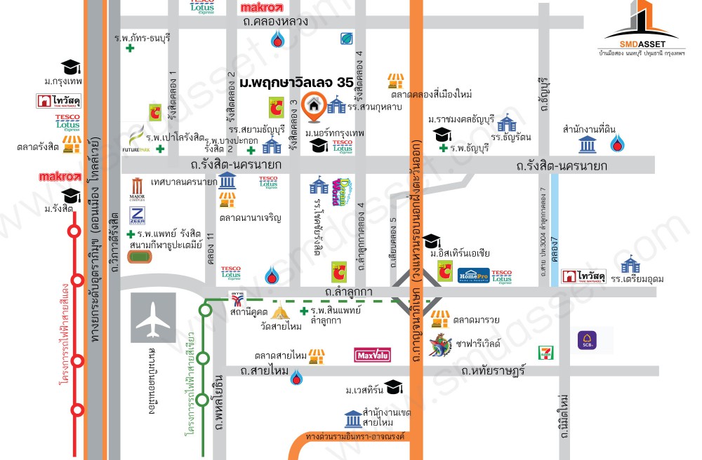 - ทำเลศักยภาพโครงการติดถนนรังสิต-คลอง3 เดินทางสะดวก เชื่อมต่อได้หลายเส้นทาง รังสิต คลองหลวง ใกล้วงแหวนกาญจนาภิเษก รายล้อมด้วยแหล่งอำนวยความสะดวกครบครัน อาทิ โลตัส บิ๊กซีคลอง 3 ฟิวเจอร์พาร์ครังสิต เมเจอร์รังสิต ตลาดไท โรงพยาบาลเปาโลรังสิต โรงเรียนสวนกุหลาบ มหาวิทยาลัยเทคโนโลยีราชมงคลธัญบุรี มหาวิทยาลัยธรรมศาสตร์รังสิต และสวนสนุกดรีมเวิลด์
