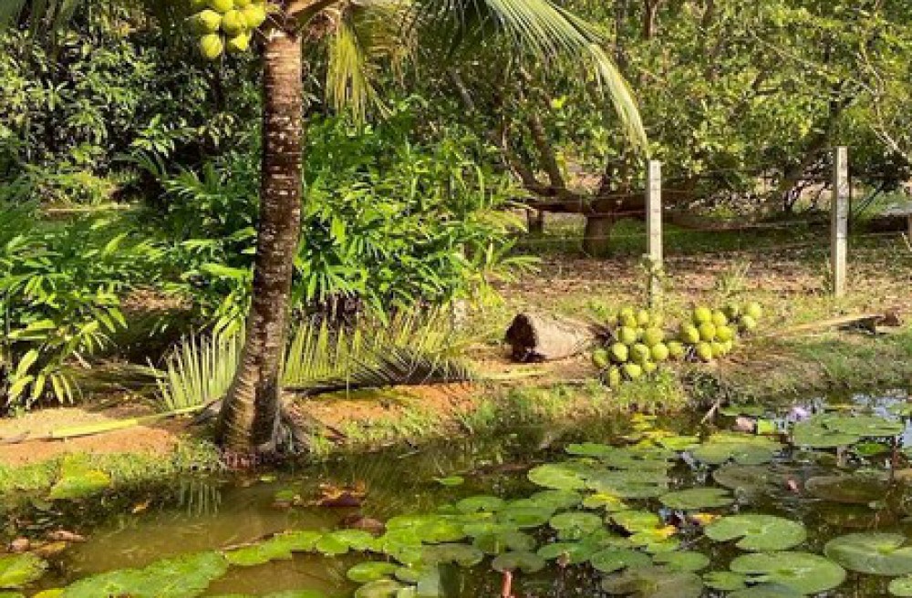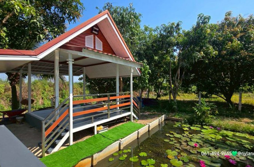 ในสวนปลูกมะม่วงและขนุน น้อยหน่า มะพร้าวน้ำหอม ให้ผลผลิตทุกปี พื้นที่สูงน้ำไม่เคยท่วม มีเพื่อนบ้าน ไฟฟ้า ประปาพร้อม หม้อไฟ 30 แอม