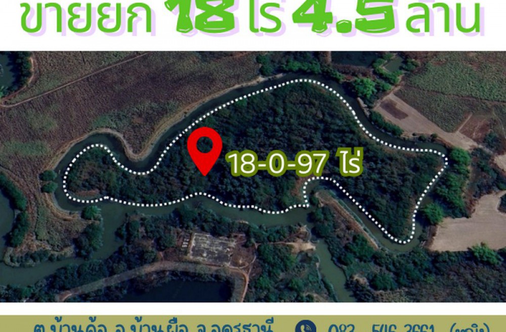 บ้านผือ , จังหวัดอุดรธานีโอกาสทองนักลงทุน ที่ดินผืนใหญ่ 18 ไร่ ติดน้ำรอบด้าน ราคาเฉลี่ยหลักร้อย!