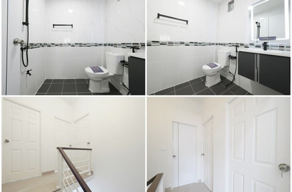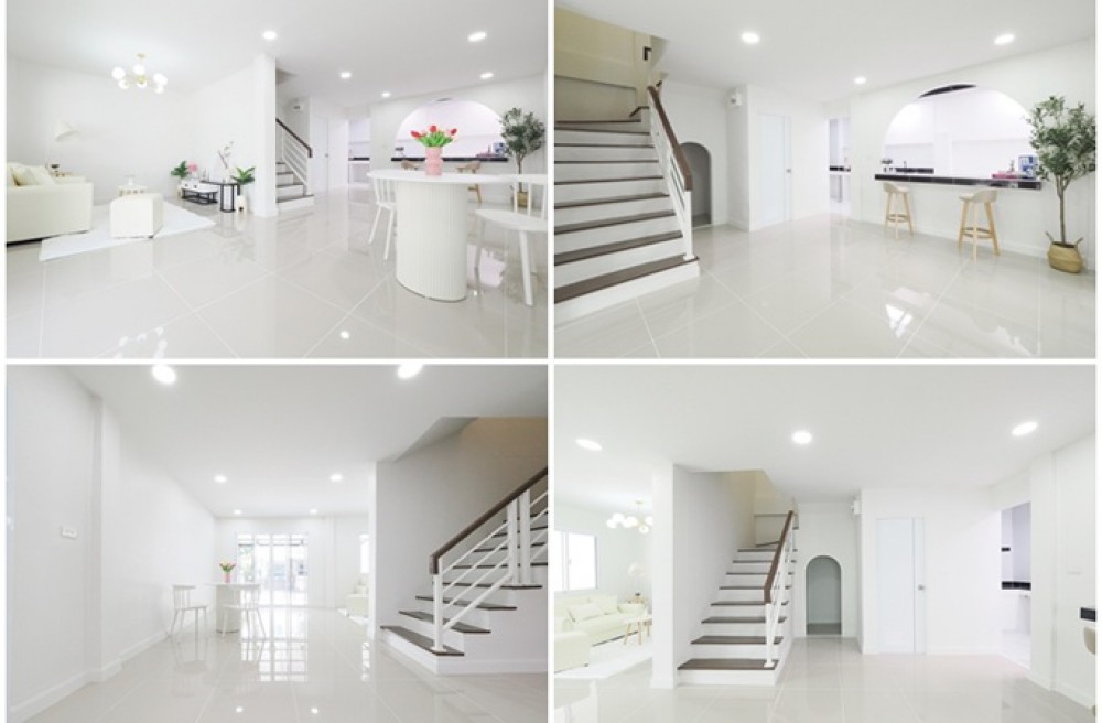 - ภายในปูพื้นด้วยแกรนิตโต้อย่างดี ชั้นบนปูพื้นไม้ลามิเนต ทาสีตกแต่งใหม่ ประตู-หน้าต่างอลูมิเนียมบานเลื่อน ห้องน้ำสไตล์โมเดิล ระบบไฟ Led บ้านพร้อมเฟอร์นิเจอร์ แต่งครบ ห้องนอนมีหน้าต่าง ครบทุกห้อง พร้อมห้องน้ำในตัว ห้องโถงขนาดใหญ่ อากาศถ่ายเทดีเยี่ยม พร้อมโซฟา ชั้นวางทีวี จอดรถในบ้านได้ 2 คัน