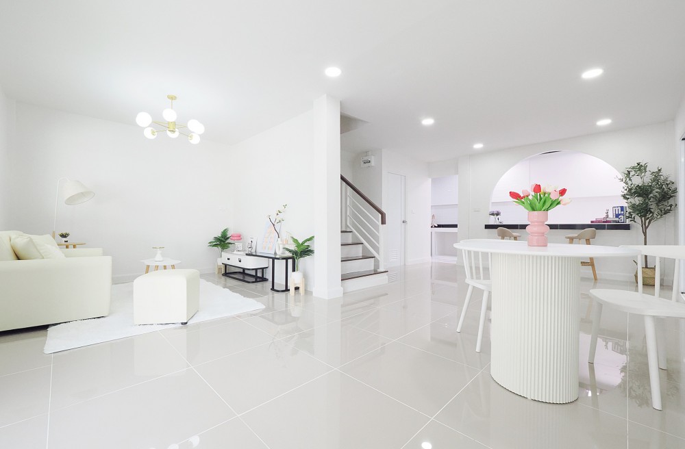 - ภายในปูพื้นด้วยแกรนิตโต้อย่างดี ชั้นบนปูพื้นไม้ลามิเนต ทาสีตกแต่งใหม่ ประตู-หน้าต่างอลูมิเนียมบานเลื่อน ห้องน้ำสไตล์โมเดิล ระบบไฟ Led บ้านพร้อมเฟอร์นิเจอร์ แต่งครบ ห้องนอนมีหน้าต่าง ครบทุกห้อง พร้อมห้องน้ำในตัว ห้องโถงขนาดใหญ่ อากาศถ่ายเทดีเยี่ยม พร้อมโซฟา ชั้นวางทีวี จอดรถในบ้านได้ 2 คัน