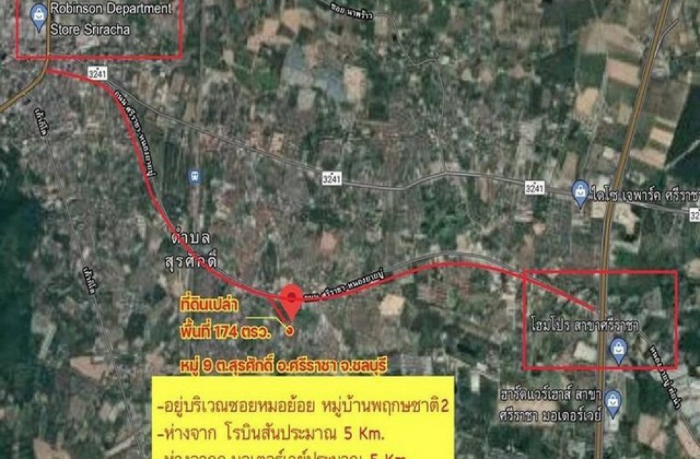 - ออกถนนสุขุมวิทประมาณ 4 km ใกล้โรบินสัน เซนทรัล ศรีราชา