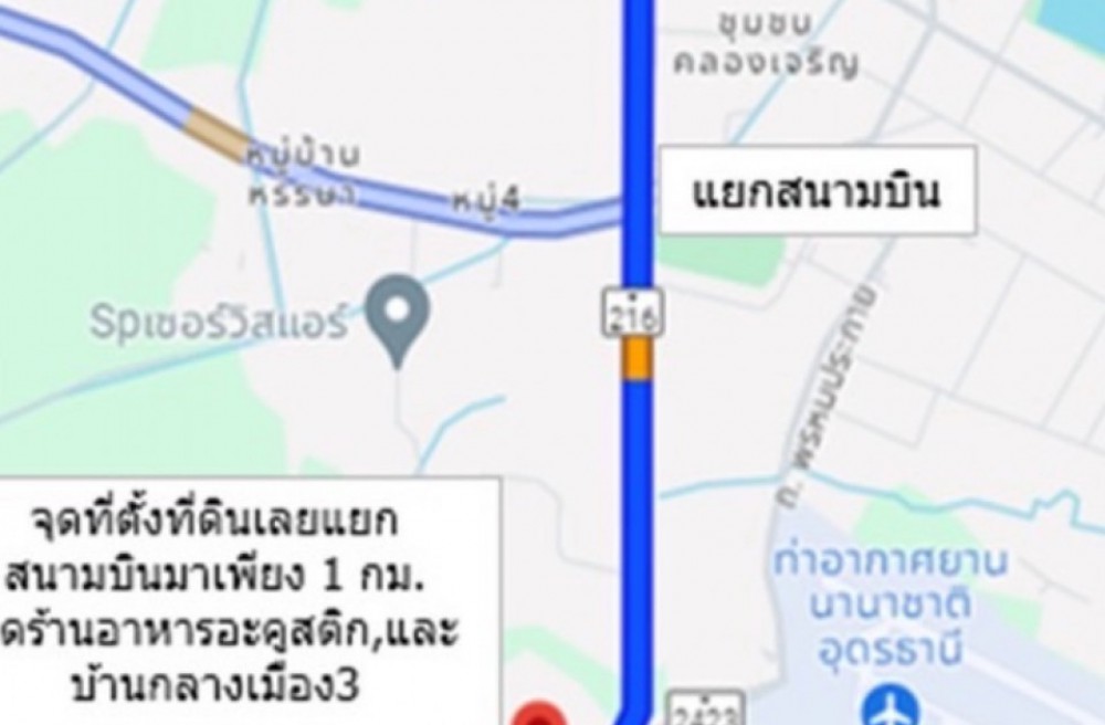 - สนามบินอุดรธานี 2 กม.