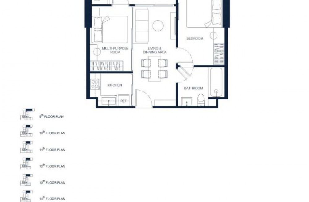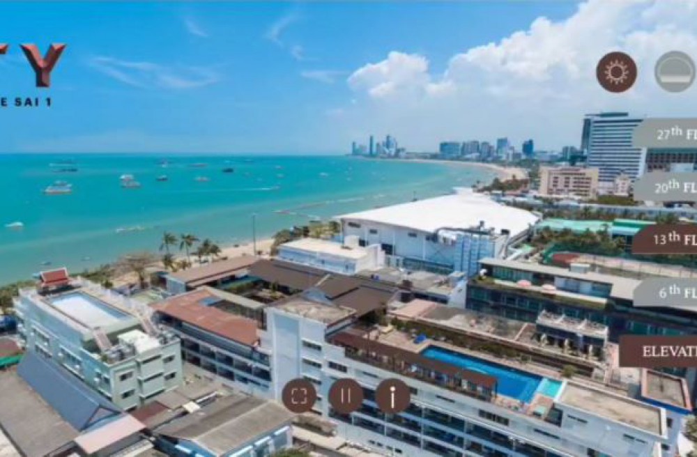 เนื้อที่ 52 ตร.ม. 2 ห้องนอน 1 ห้องน้ำ 1 ห้องรับแขก ชั้น 14 ชั้นสูง วิวทะเล มองเห็นทะเลชัดเจน
