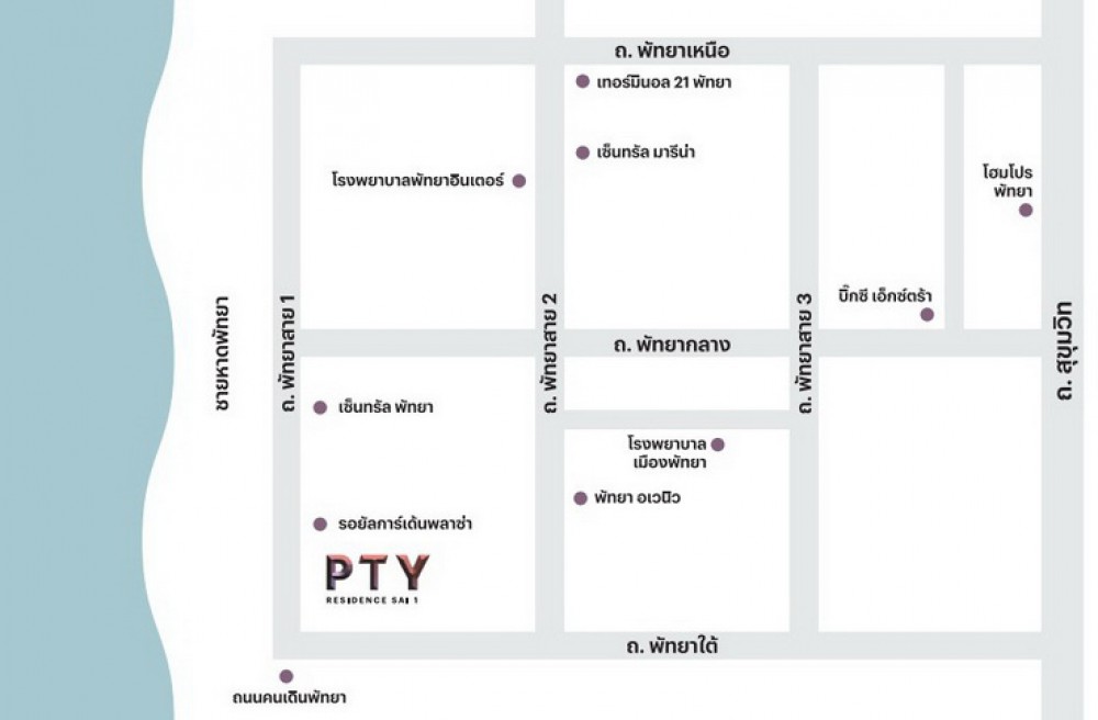 ถ.เลียบชายหาด ถ.พัทยาสายสอง ถ.พัทยาใต้ ถ.พัทยากลาง ถ.พัทยาเหนือ ถ.สุขุมวิท