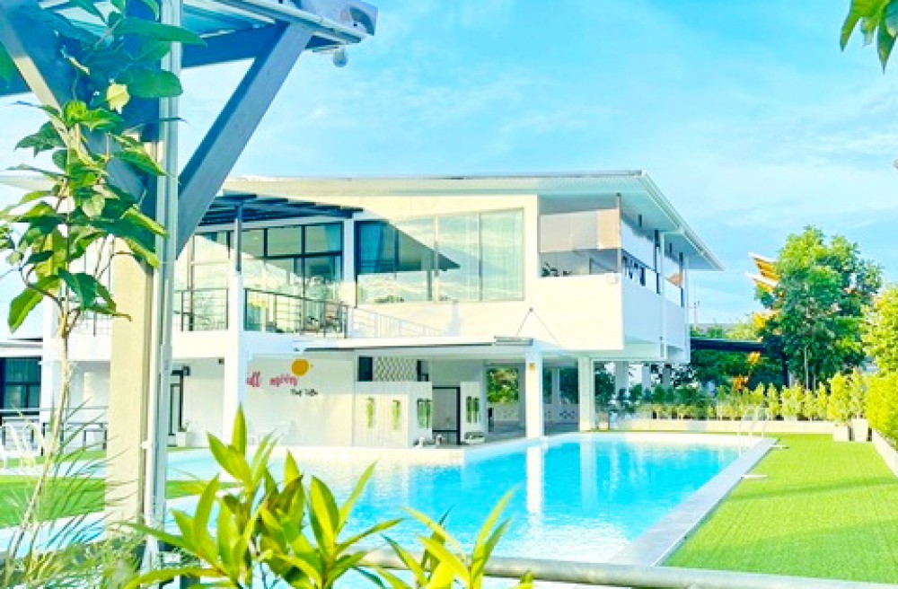 สระว่ายน้ำระบบเกลือขนาดใหญ่ พร้อมสระเด็กระบบเกลือ พื้นที่สวนกว้างสำหรับจัดกิจกรรม กางเต็นท์ดูดาว และพักผ่อนท่ามกลางธรรมชาติ
