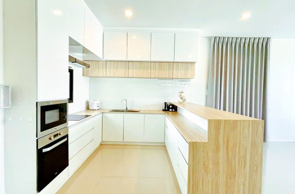 ครัวจัดเต็ม เตาไฟฟ้า เตาอบ ไมโครเวฟ กระทะ เครื่องปิ้งขนมปัง กาน้ำร้อน หม้อชาบู เตาปิ้งย่าง พร้อมน้ำดื่ม น้ำแข็ง และอาหารเช้า ขนมปัง ไข่ กาแฟ โอวัลติน