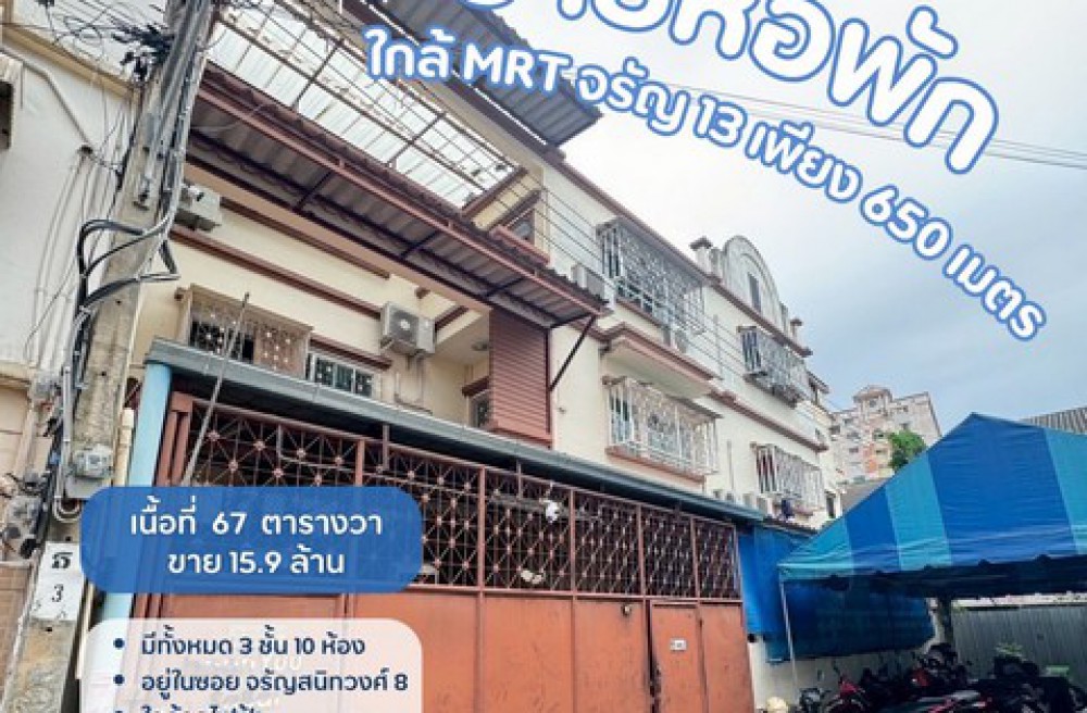 #ขายหอพักใกล้mrtจรัญ13 #หอพักใกล้รถไฟฟ้า