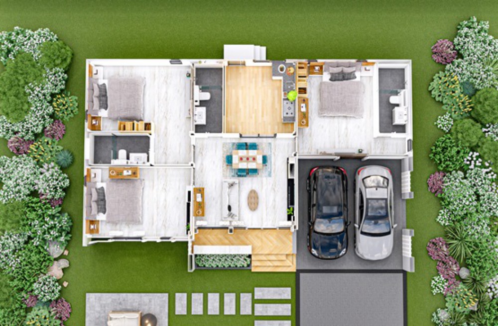 • พื้นที่ใช้สอย: 150 ตารางเมตร (รวมโรงจอดรถและลานซักล้าง)