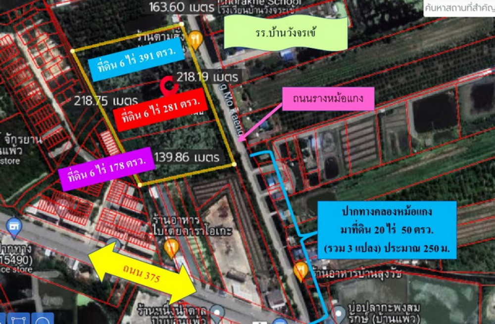 ขายที่ดิน ตำบลหลักสาม อำเภอบ้านแพ้ว สมุทรสาคร ถนนบ้านแพ้ว ตรงข้ามโรงเรียนบ้านวังจรเข้ รายละเอียดทรัพย์ – ที่ดิน เนื้อที่ 20-0-50 ไร่ แปลงสวย หน้ากว้าง 218 x 140 เมตร – แบ่งขายได้แปลงละ 7 ไร่ หรือซื้อยก 3 แปลง – ราคาไร่ละ 2 ล้านบาท(ต่อรองได้ ยินดีรับทุกข้อเสนอ) – หน้าที่ดินติดถนนสาธารณประโยชน์กว้าง 8 เมตร – เหมาะทำจัดสรรที่ดิน สร้างที่พักอาศัย(โครงการบ้านจัดสรร) – หรือซื้อเพื่อการลงทุนในอนาคต สถานที่ใกล้เคียง – รร.บ้านวังจรเข้, รร.สารสาสน์วิเทศบ้านแพ้ว – รพ.บ้านแพ้ว – อบต.บ้านแพ้ว, สถานีตำรวจบ้านแพ้ว – สนง.ที่ดินจังหวัดสมุทรสาครสาขาบ้านแพ้ว การเดินทาง – ตั้งบน ถ.บ้านแพ้ว – เชื่อมต่อ ถ.พระราม 2, ถ.เพชรเกษม, ถ.คลองรางหม้อแกง – ใกล้ทางหลวงแผ่นดิน 375, 5027, 3190