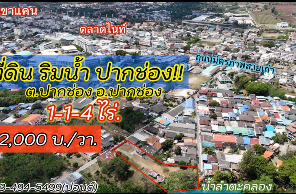 ปากช่อง , จังหวัดนครราชสีมาขายที่ดินติดริมน้ำใจกลางปากช่อง (1-1-4 ไร่.)