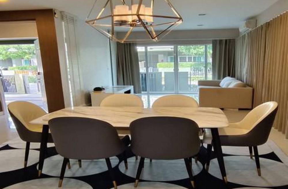 เตียงนอนทุกห้อง/ ชุดรับแขก / โต๊ะกินข้าว / ตู้เย็น / เครื่องซักผ้า /เตาไฟฟ้า