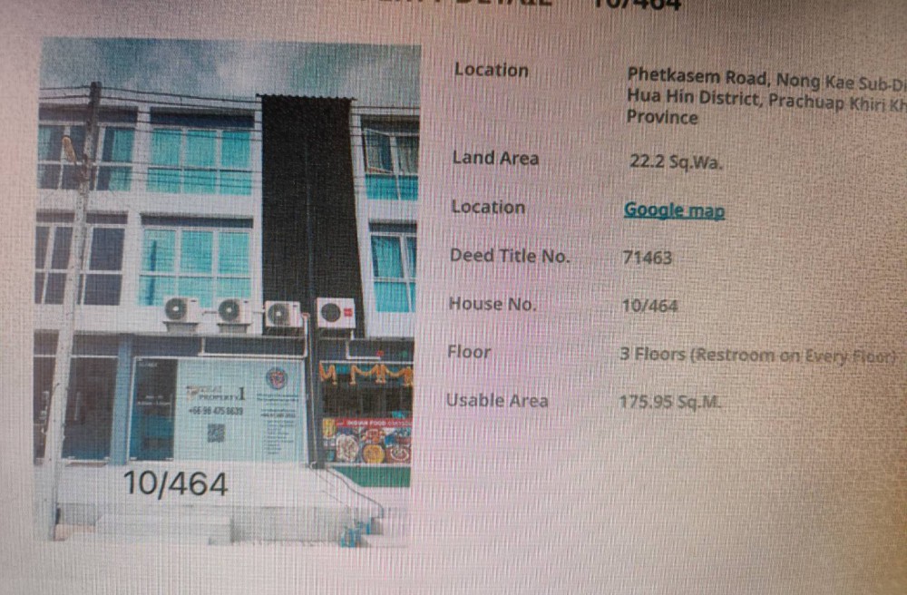 หัวหิน , จังหวัดประจวบคีรีขันธ์Commercial building 3 storey near Beach 400 m. on sale at Hua Hin