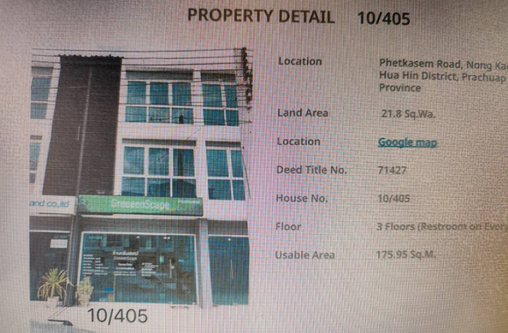 ขายอาคารพาณิชย์ มี 5 ยูนิต โครงการทำเลดีๆ หนองแก หัวหิน