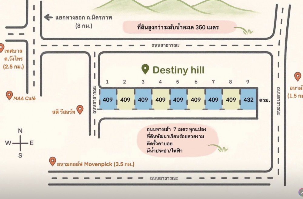 ปากช่อง , จังหวัดนครราชสีมาที่ดินวิวเขายายเที่ยง แปลงละ 409 ตรว. จำนวน 7 แปลง ติดกัน โฉนดครุฑแดง เนื้อที่ดินสูง (สูงกว่าระดับน้ำทะเลประมาณ 350เมตร) ถนนเข้าโครงการ 7 เมตร ห่างจากถนนหลัก ประมาณ 100 เมตร อากาศเย็นสบายมีลมตลอดปี, หน้าหนาวอากาศดีมากๆ หน้าฝนชุ่มฉ่ำ