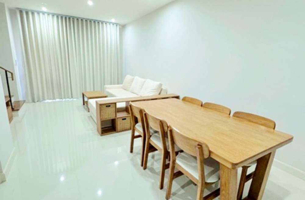 Rama 9 Bangkok Kreetha Brighton Inter Sch Bangkok 900m. 3-story townhome 3 bed 3 bath near Tops Daily Usable area 18.5 sq.wa. 220 sq.m. 43,999 B-M Baan Klang Muang project new fully furnished house prime location near ARL Ban Thap Chang 3.5 km. and major roads of East Bangkok convenient for living near international schools shopping areas and the airport.