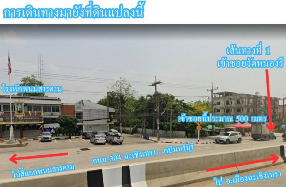 ระยะทางจากที่แปลงนี้ถึงถนนใหญ่ 304 (ฉะเชิงเทรา - กบินทร์บุรี) เพียง 600 เมตร