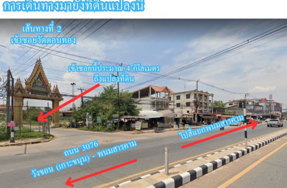 ที่ดินตั้งอยู่ในซอยถนนสาธารณะที่มีโรงพักพนมสารคาม , การไฟฟ้าส่วนภูมิภาคและวัดหนองรี เมื่อถึงซอยย่อยที่มีร้านอาหาร “ร่มไม้ชายคลอง” อยู่ปากซอย เข้าซอยย่อยไปอีก 100 เมตร จะพบว่า ที่ดินตั้งอยู่ทางขวามือ และสามารถเข้าทางด้านข้างที่ดินได้ โดยเข้าซอยที่มีร้านกาแฟ “ไฮบีน่า” ไปประมาณ 140 เมตร ซึ่งทางเข้าทั้ง 2 ซอยเป็นถนนคอนกรีตกว้าง 5 เมตร