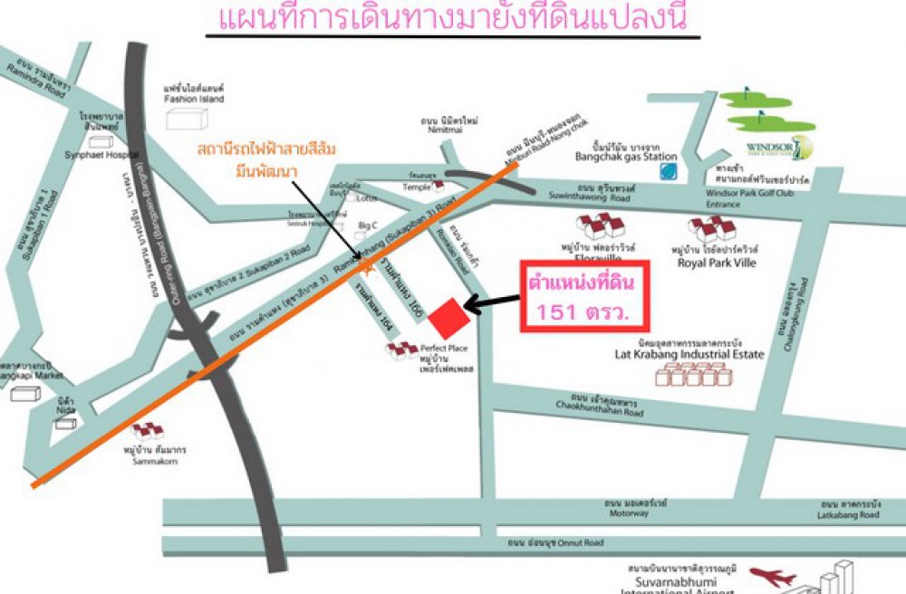 มีน้ำประปา ไฟฟ้าพร้อมใช้ มีบ้านหลังใหญ่ปลูกใหม่อยู่ใกล้ๆกับ แปลงที่ดิน มีสถานีรถไฟฟ้าสายสีส้มอยู่ปากซอย ระยะทางจากที่แปลงนี้ถึงซอยรามคำแหง 166 เพียง 1 กิโลเมตร